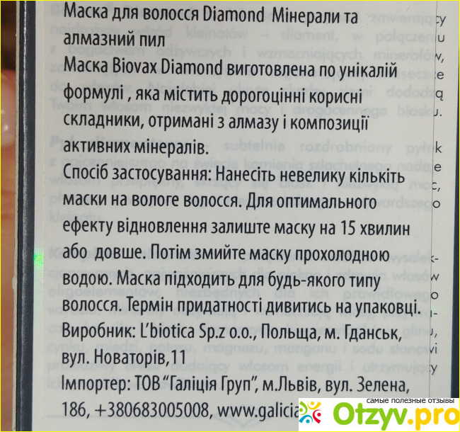 Приветствую всех читающих мой отзыв. Хочу поделиться впечатлением от использования маски для волос BIOVAX L'biotica Diamond.