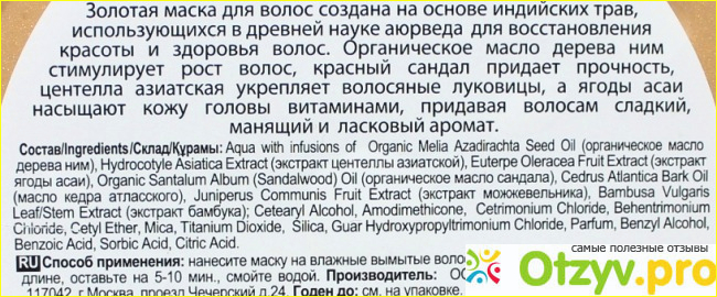 Состав маски, на первый взгляд, хорош. Потому что с самого начала указаны органические, растительные компоненты. Они первым делом бросаются в глаза и призваны убедить покупателя в натуральности. А вот ближе к концу указана химия. Но я бы не сказала, что ее больше, чем в других масках для волос.