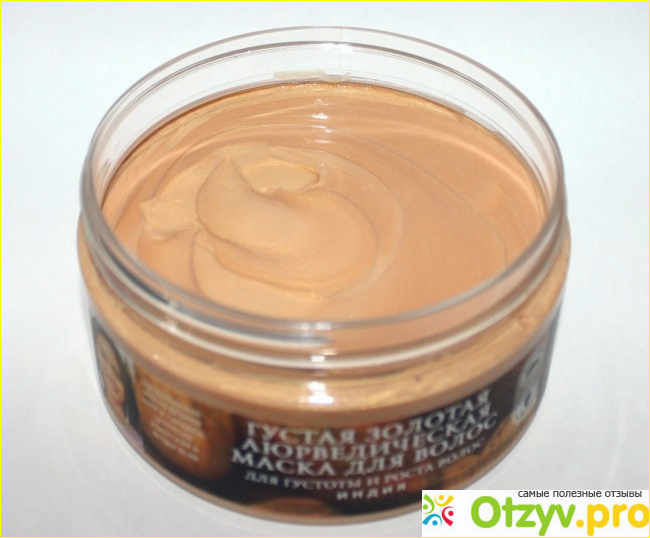 В данном случае польстилась на продукт от знаменитой органической марки Planeta Organica. Название мне показалось многообещающим - "Золотая аюрведическая маска для густоты и роста". Конечно, я не слишком верю, что подобные средства могут ускорить рост волос, но вот объем частенько дают. Наверное, именно это имел ввиду производитель под словом "густота".
