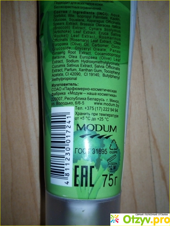 На обратной стороне тубы имеется информация полезная для потребителя: состав, изготовитель, срок годности, масса продукта, ГОСТ и так далее.