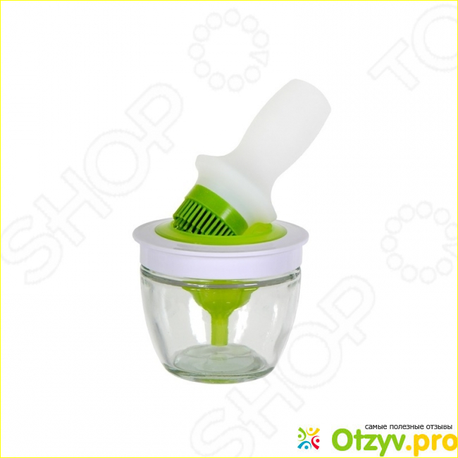 Объем чаши сто пятьдесят миллилитров, изготовлена из: стекла, пластика, силикона. Многофункциональная масленка с кисточкой-дозатором идеальна для нанесения маринада, масла или соуса, термостойкая силиконовая щетина, уникальная система хранения масла, герметичная емкость, можно мыть в посудомоечной машине, использовать в микроволновой печи.