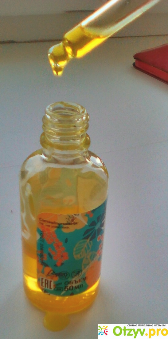 Механизм подачи масла как у пипетки, набираешь необходимое количество и наносишь на влажные волосы, лично я наношу и на сухие, чтобы уложить лучше волосы. Масло ярко желтого цвета, густое, с выраженным запахом облепихи, но он быстро улетучивается, и запах остается почти нейтральный.
