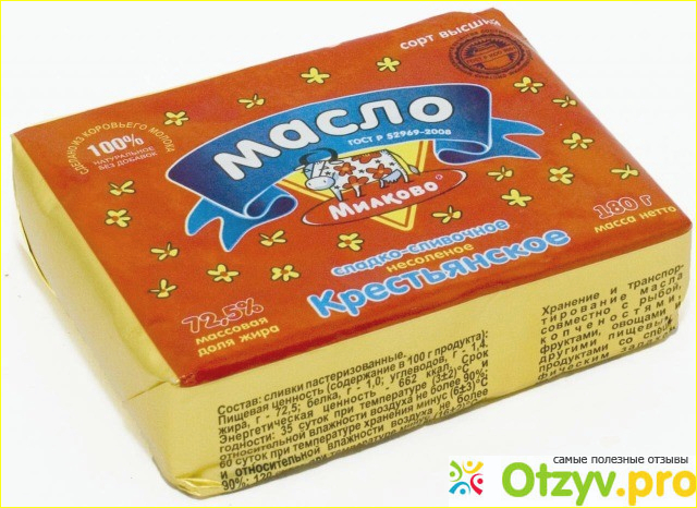 Продукт высокой жирности- 72,5%, высшего сорта, вес в пачке готового продукта составляет 180 грамм. Стоит такая упаковка на оптовой базе 63 рубля, в розничных магазинах цена будет выше, это точно.