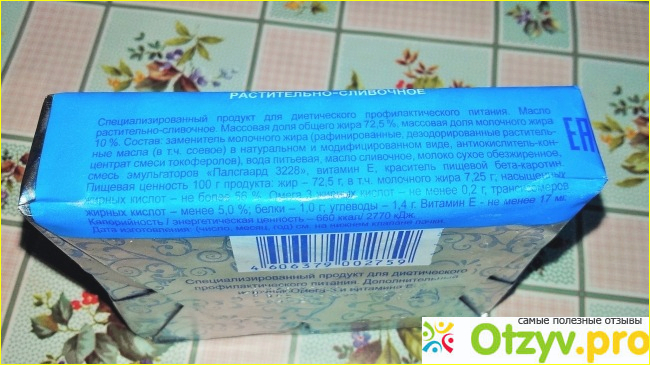 Представляю вашему внимаю одно из самых лучших масел растительно сливочного состава. Производитель продукта находится в городе Санкт-Петербург. На самом деле в списке компонентов указано содержание молочных жиров, но это не важно.