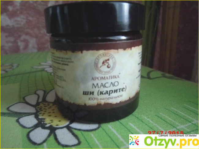 Теперь немного описания: на вид напоминает твердый жир белого цвета; когда набираешь на палец тает; запаха практически нет. Масло Ши широко используют в косметологии по уходу за волосами, лицом, телом. Можно использовать от ожогов, оно очень хорошо смягчает, увлажняет и разглаживает кожу.