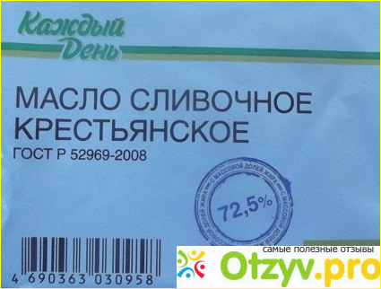 На обратной стороне упаковки приведен состав масла, который мне очень понравился (как и цена), да и то, что масло изготовлено по ГОСТ мне было приятно прочитать, как - то сказывается давнее восприятие того, что продукция изготовленная в соответствии ГОСТ отличается высоким уровнем качества. На вид масло тоже выглядело очень свежим, равномерно размешанным.