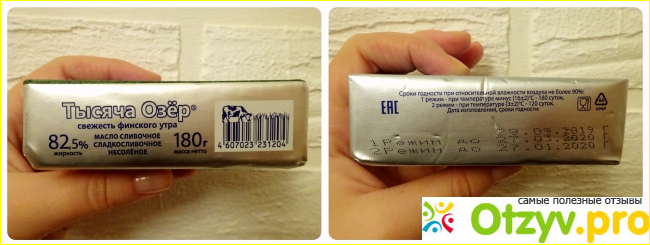 На упаковке много полезной информации, вся она читается достаточно легко. Масло "Тысяча Озер" имеет отметку "Эко - Тест Плюс", которая означает, что продукт соответствует национальным и международным стандартам экологичности. Именно благодаря высокому качеству продукции в 2017 году компании «Нева Милк» стала лауреатом национальной премии «Марка №1 в России».