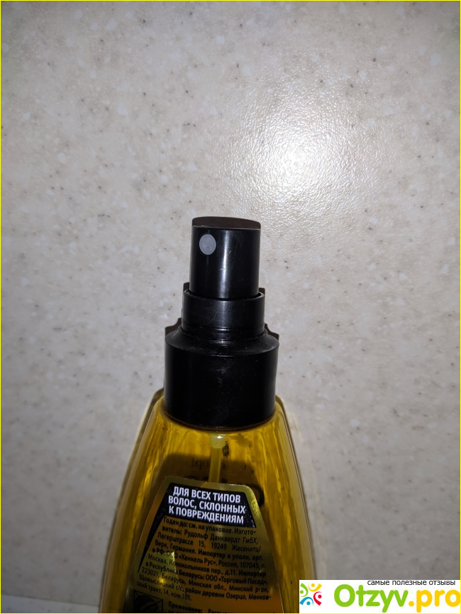 Флакон удобно помещается в руках, у него очень удобный пульверизатор, который отлично распыляет средство на волосы.