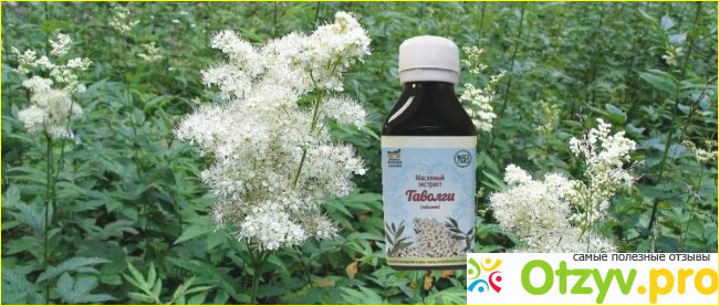 Растение легко снижает повышенное давление (на 40%) за двадцать минут. Уровень холестерина снижается до нормальных показателей у 87% пациентов. И все эти возможности во флаконе темного стекла с белой крышкой. На этикетке нарисовано растение и написано Масляный экстракт Таволги.