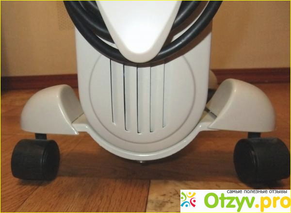 Начну с габаритов. Техника довольно компактная и не занимает дома много места. Она предназначена непосредственно для напольного размещения, есть колесики для транспортирования, очень удобные, а также ручка для переноса масляного обогревателя.