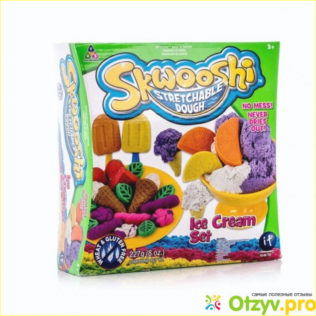 Sqwooshi очень необычная масса, представляет собой нечто среднее между обычной массой для лепки и кинетическим песком (в составе тот же песок из которого состоит кинетический песок).