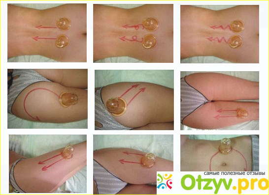 Дальше после установки баночки на проблему зону можно начинать делать массаж. Делать сам массаж можно в разных направлениях. Лучше всего если вы будете делать его сверху вниз или слева на право. Если вы уже обладаете небольшим опытом проведения антицеллюлитного массажа, то его можно так же выполнять круговыми движениями по и против часовой стрелки.