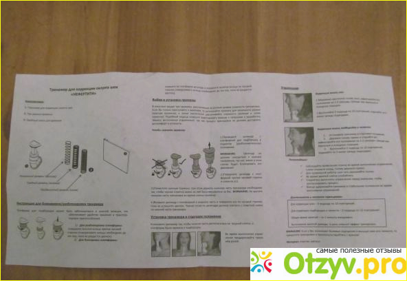 В инструкции описаны простые упражнения, которые несложно делать ежедневно. Нужно зафиксировать подбородок на резиновой основе - площадке и выполнять необходимые действия.
