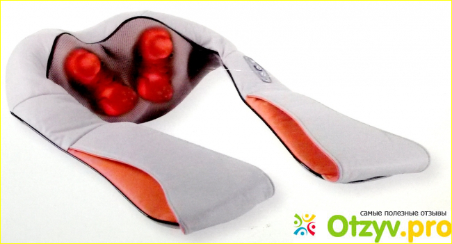 Смотрите, как легко им управлять - сделан в виде шарфа-воротника, в центральной части и расположен весь действующий механизм, иногда я пользуюсь им в положении лежа, мне так больше нравится, потому что рабочая часть плотно прилегает к телу и массаж, на мой взгляд, получается более эффективный. Но это я так люблю, на меня не обращайте внимания, для кого-то это будет невыносимо.