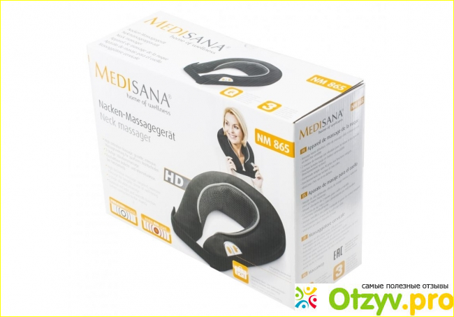 Массажер для шеи и плечевой зоны, Medisana NM 865, имеет вид воротника, который нужно надевать на шею и плечи. Имеется застежка на липучке, для того, чтобы удобно закрепить его на этом месте.
