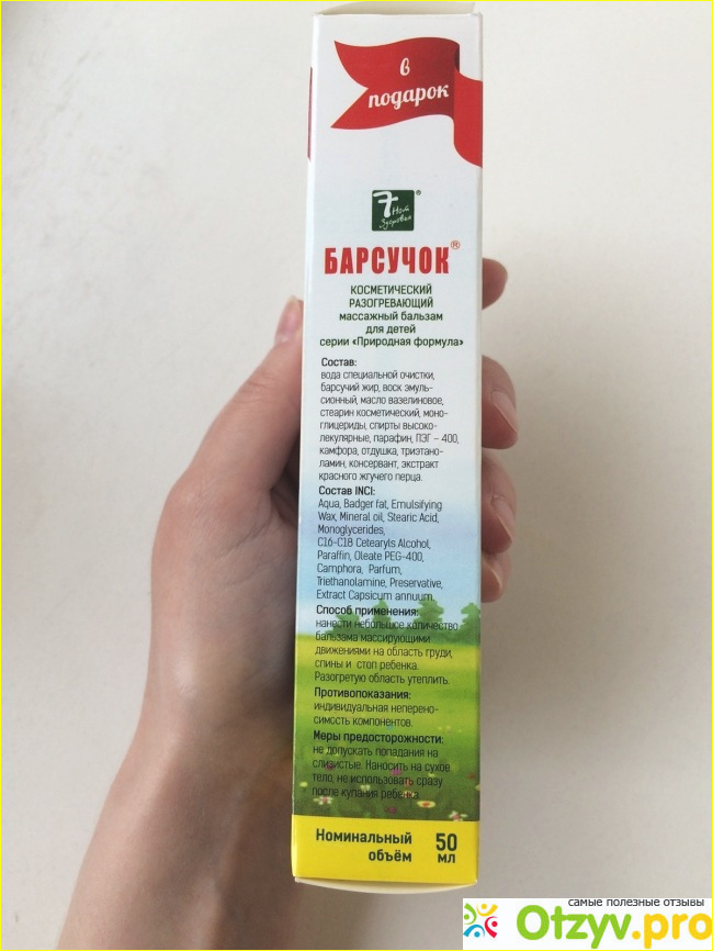 Состав тоже правильный: на втором месте барсучий жир, никаких антибиотиков и обезболивающих компонентов.