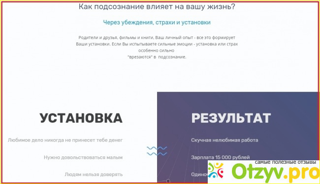 А в основе этой программе, как я думаю, лежит устранение страхов, которые мы тянем в свою жизнь еще с детства. Мы чего-то испугались в прошлом и теперь страхи не дают нам раскрепоститься и двигаться вперед. В общем с этой проблемой мог бы справиться личный психолог, но ведь у нас его нет, как это принято в Америке. Поэтому эта методика может быть заменителем личного психотерапевта, который стоит не мало, но за будущее нужно платить.