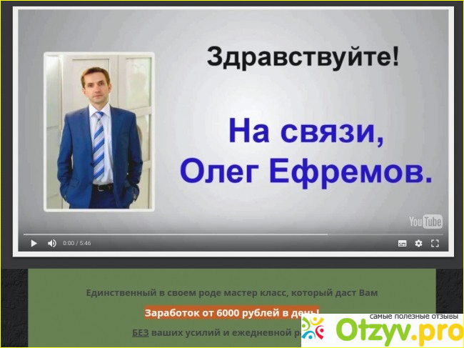 Всем привет! Всегда хочется больше заработать, а главное чтоб много времени на это не потратить. Вот вам очередной лохотрон от олега ефремова.
