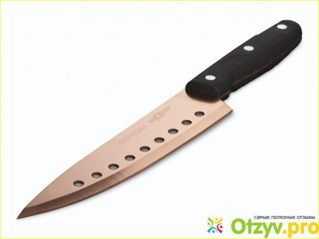 Мастер-шеф от Delimano — брендовый нож, а потому и сталь в данном случае радует высоким качеством. Это материя, которой можно доверять и не сомневаться в ее высоком качестве.