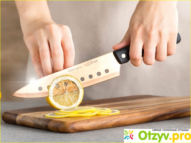 Производитель позиционирует изделие как особенно-острый нож, который может нарезать тонкими ломтиками даже мягкий виноград.