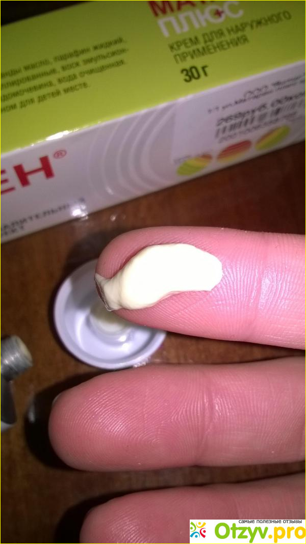 Сам крем слегка желтоватого цвета, консистенция плотная, но чувства липкости не остается. Требуется небольшое количество, примерно с горошину, для достижения эффекта обезболивания. Запах не противный, травяной, к тому же он быстро выветривается. Это огромнейший плюс, потому что знаю: иногда обезболивающие мази так воняют, жуть просто!
