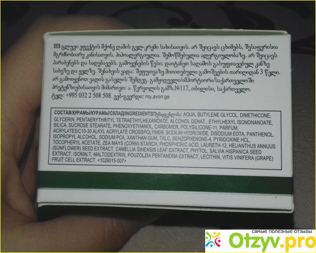 Что касается внешнего вида данного ночного крема от "Эйвон", то мало чем он отличается от дневного крема, та же коробочка белого цвета, та же форма у нее, разве что надписи разные, да и зеленый цвет темнее, как бы намек на то, что крем для темного времени суток.