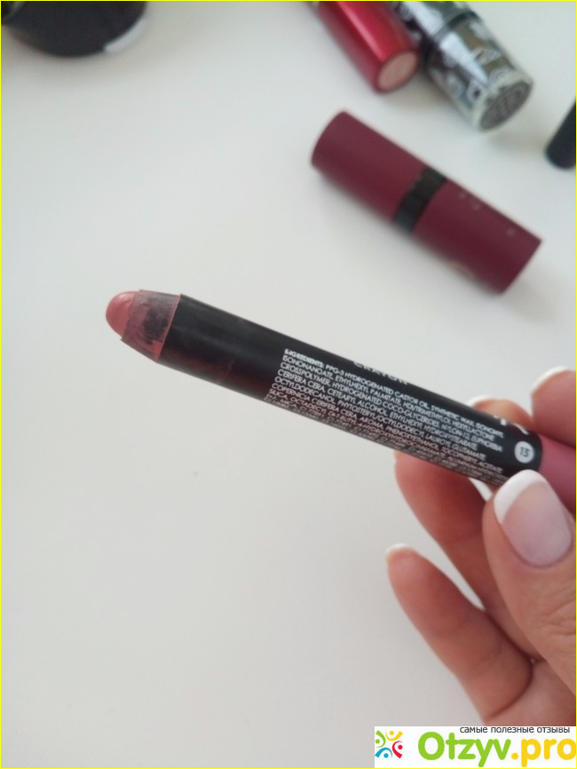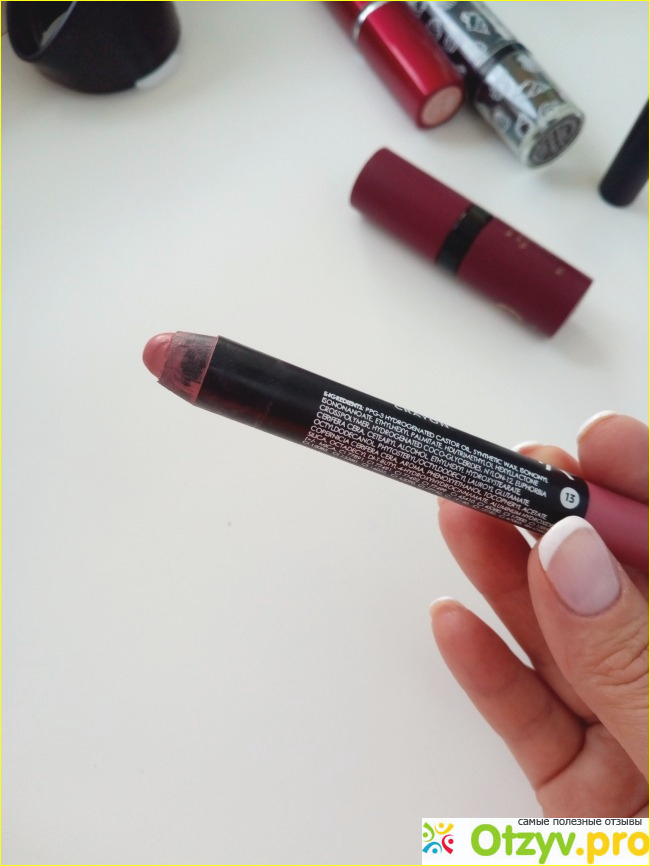 Имеется 2 вида такой помады: в виде карандаша и привычного формата помады. По консистенции и качеству они абсолютно одинаковы. Карандашом удобнее наносить помаду.