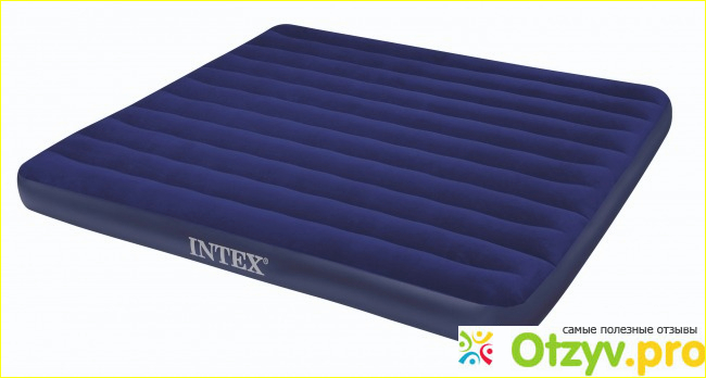Надувной матрас Intex Royal синего цвета. Он довольно большой и прочный. Одна сторона у него резиновая, а вот другая сторона покрыта как бы маленьким мягким приятным на ощупь ворсом. Производитель рекомендует использовать матрас ворсом вверх.