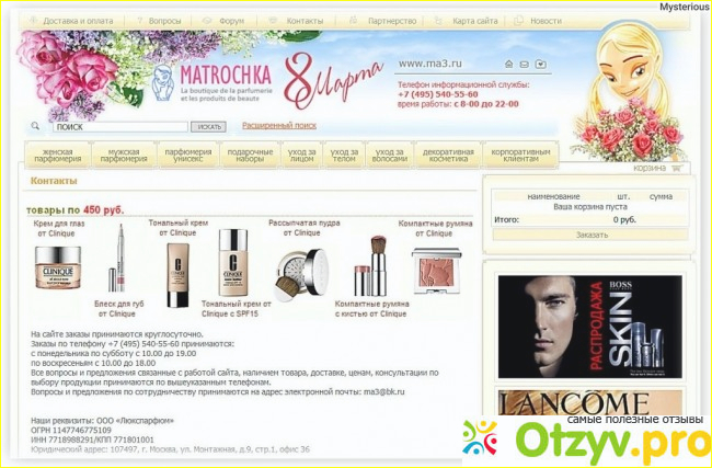 Интернет магазин "Матрешка" рассчитан для категории женщин и мужчин со средним уровнем достатка, кто не пользуется профессиональной и дорогой косметикой и парфюмерией на сайте делать будет нечего. А кто любит себя и баловать периодически новинками по привлекательным ценам премиум косметики, то должно понравится.