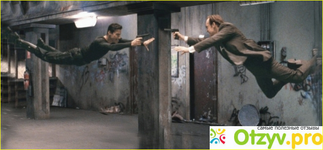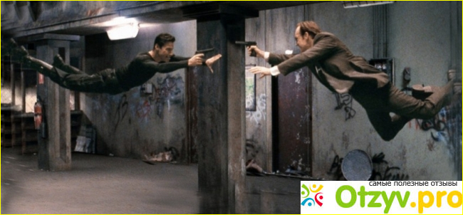О спецэффектах. «Матрица» это же фильм, который изобилует легендами о своих спецэффетах. Так вот, меня они не впечатлили. Не знаю почему. Может в начале 2000-ых это и смотрелось круто, но лично меня Матрица не удивила в плане трюков и всего остального. К тому же меня чрезвычайно бесит слоу-мо, когда действие замедляется. Я никогда не понимал, что в этом слоу-мо крутого. А теперь представьте, какого мне было смотреть Матрицу с её постоянными слоу-мо. Я смотрел и не понимал, почему нельзя было сцену где Нео уклоняется от пуль снять в нормальной съёмке, крутости это бы не убавило.