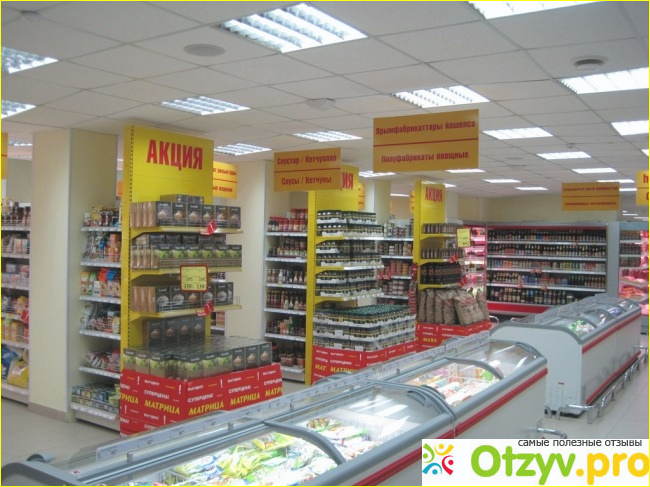 В магазинах "Матрица" работают довольно таки сообразительные маркетологи, ведь во всех их супермаркетах хлебные отделы расположены в самой глубине магазинов. Таким образом, быстро зайти и взять буханчку хлеба не получится, вам придется обойти другие отделы, где вам на глаза попадутся еще какие нибудь продукты еоторые вы прихватите. Этому способствуют всякие стенды с красиво оформленными отделами, акции на некоторые виды товаров в результате чего цены на них получаются ниже чем в других магазинах.