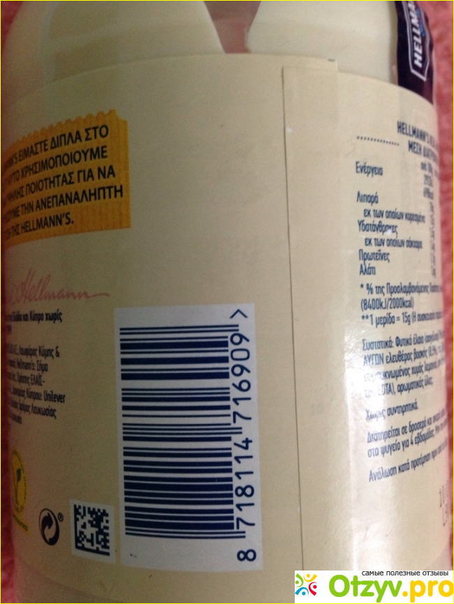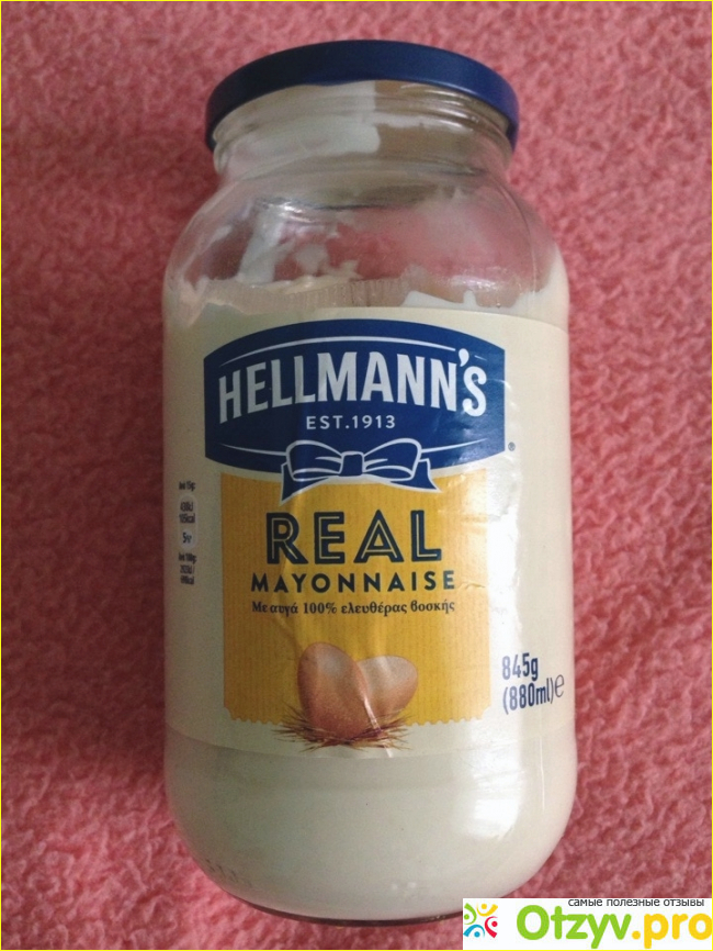 Продукт выпускается в стеклянных емкостях по 800, 400 и 200 мл. Правда, он достаточно калорийный, но расходуется очень экономично. На фото видно, что майонез густой, не течет по банке и не расслаивается. Хранится в холодильнике долго, до двух месяцев, сохраняя вкусовые и питательные качества. Такой соус можно использовать не только для салатов, но и для супов, горячих блюд. Hellmann's нежный, придает практически любой еде мягкость и сливочный оттенок вкуса.