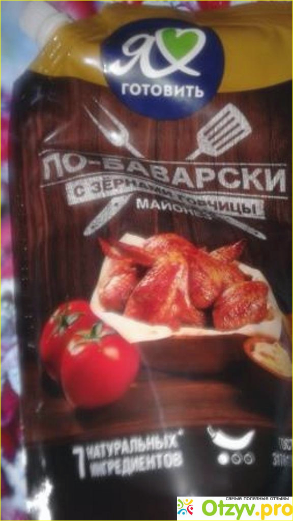 Он необычный и непривычный. Это я поняла, когда открыла его. И цвет его не белый, как у обычного майонеза. Состав его натуральный. Написано, что он со зернами горчицы. И они есть в составе, даже на зубах зернышки попадаются. Из за горчицы, у него слегка желтоватый цвет. Кто привык к обычному майонезу, как я. Будите удивлены майонезу по-баварски.