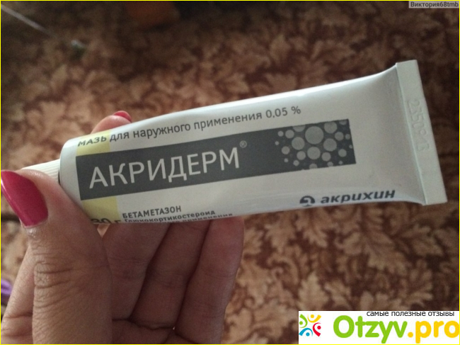 Средство Акридерм периодически используют при обострении псориаза. Этот препарат действительно хорошо помогает убрать зуд и покраснения на коже. И мои обострения начинают по чуть-чуть проходить.