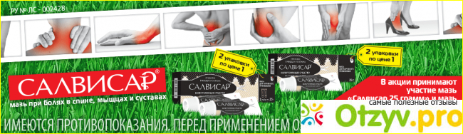Когда случайно оступилась и немного припух голеностоп, то я уже знала, чем мне пользоваться. Причем это основная цель салвисара, как оказалось. Она снимает болевые и расширяет сосуды в месте ушибов и растяжений. Все отлично, эффект сказался спустя полнедели, - пропустила только одну тренировку. Также люблю заниматься в белой форме в зале, и для важен эстетический момент. Мазь хорошо впитывается, не оставляет жирных следов на одежде. Всецело, как разогревающая мазь – подходит по всем параметрам. Акцентирую внимание на этом препарате, пользуюсь и планирую в дальнейшем.