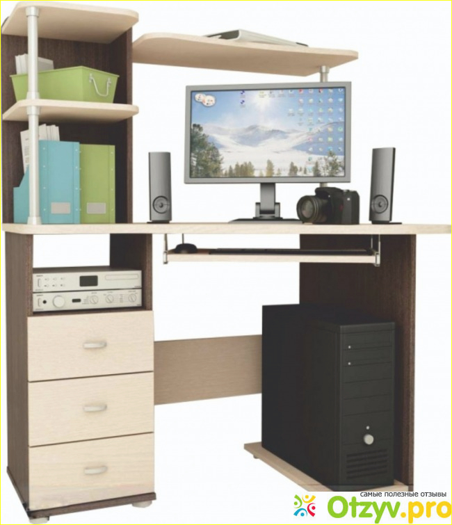 По крайней мере, такой вывод составлен на основе отзывов людей, которые пользовались купленными офисными столами несколько месяцев, а то и более года. Отмечается качество сборки, качественное покрытие и отсутствие изъянов. Выбирается только хорошее и прочное дерево. И всё это по вполне адекватным, демократическим ценам. Можно сказать, что в категории офисной мебели компания Витра представляет одни из самых лучших решений на рынке. На фото ниже изображен пример компьютерного стола за невысокую цену в 7 тысяч рублей: