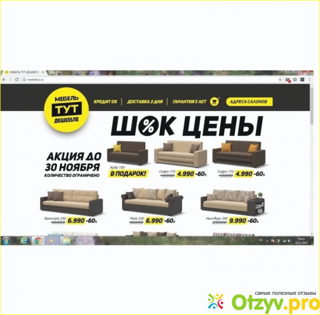 Первый раздел посвящен ДИВАНАМ. Сразу мы видим акцию до 31 декабря. Видимо тут постоянно их устраивают под очередной приближающийся праздник. Причем скидки внушительные - до 70%.