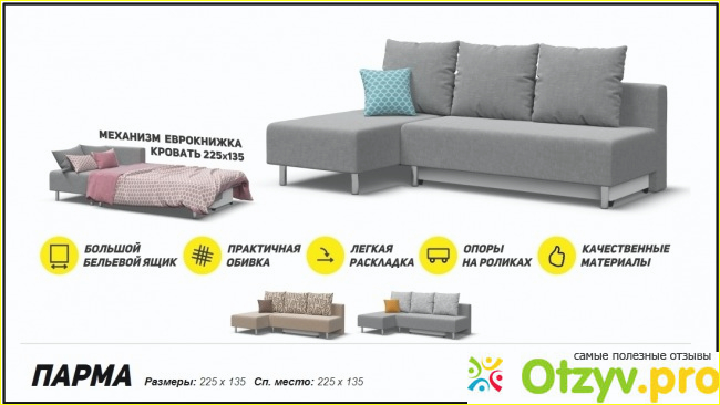Но правда информации довольно мало. Указан размер товара и размер спального места. Указывается, что имеется большой бельевой ящик, какая обивка, какая тут имеется раскладки, опоры на роликах. Все это представляется в виде значков на желтом фоне.