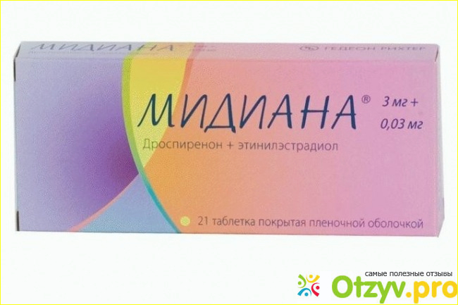 Мидиана- это круглые таблетки, покрытые белой оболочкой, которые являются противозачаточным прероральным контрацептивом. Это комбинированный препарат, в состав которого входит два основных активных вещества: дроспиренон и этинилэстрадиол.