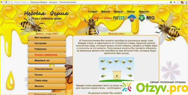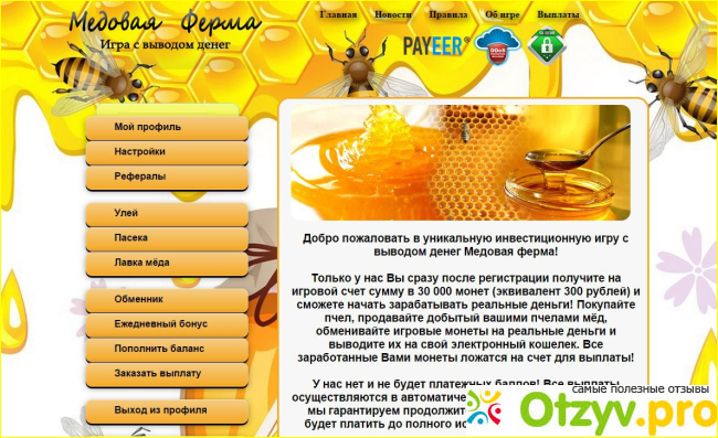 Вывод денег реален, кидалова нет. Игра позитивная, яркая, с шикарной графикой, которой я могу любоваться часами. Играю подолгу вовсе не от того, чтобы заработать. Просто это мой отдых — покупать пчелок, заниматься ими, смотреть сколько мне капает денежек с каждой пчелки, считать...