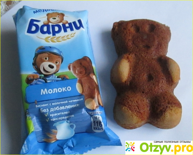 Бисквитное пирожное в виде медвежонка сразу понравилось моего ребенку. Яркая упаковка с нарисованными мишками, пирожное в форме мишки. Все это привлекает внимание малыша.