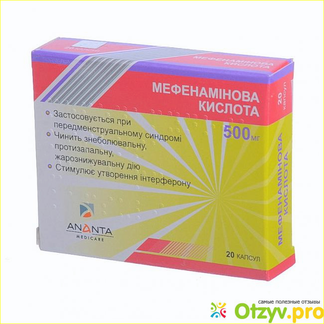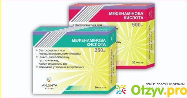 то они также размещены в картонную коробку-два блистера по десять капсул в каждом. Как и в каждом медицинском препарате в состав мефенеминовой кислоты входят и вспомогательные вещества. Это октадекановая кислота, картофельный крахмал, метилцеллюлоза, кроскармеллоза натрия, стеариновокислый магний. Также ко всему прочему мефенаминовую кислоту можно отнести к группе противоревматических и нестероидных противовоспалительных средств. А еще мефенаминовая кислота обладает умеренно выраженным противовирусным эффектом. Капсулы или таблетки принимают внутрь, всасывается в желудочно-кишечный тракт около трех часов. А, вот период выведения лекарственного средства составляет сто двадцать минут, или чуть больше. А вывожится преимущественно с мочой и фекалиями.