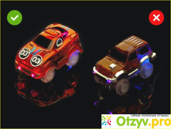 Светятся в темноте. Благодаря светодиодам у машин срабатывают фары. Это дает игрушке возможность освещать пространство.