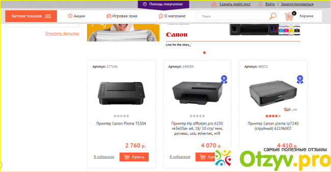 Принтеры – вот что касается этого раздела, то здесь я не увидела большой разницы в цене, если сравнивать с обычными магазинами. Просто недавно покупала принтер и конкретно рассматривала разные модели, приценивалась, в этом плане сайт не очень выгодный. Разница в сто, максимум двести рублей. Зачем тогда заказывать в интернете и ждать доставки, если можно просто купить в магазине.
