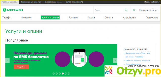 Теперь что касается того как выглядит сам официальный сайт Мегафон. Выглядит он интересно и ярко в обычных своих зелено белых цветах это фишка Мегафона, но мне, по крайней мере, нравится. Ещё, что удобно на сайте Мегафон так это то, что можно удобно посмотреть тарифы выбрать для себя необходимый по цене. Даже можно посмотреть какие были раньше тарифы, то есть архив тарифов. Также можно посмотреть какой интернет предоставляет Мегафон. Также можно посмотреть все возможные услуги и опции, которые предоставляет эта компания в своей сотовой связи. Также можно совершать платежи и переводы прямо через сайт МегаФон тоже удобно кстати. Можно даже всё почитать о роуминге и посмотреть самое главное, какие проходят акции в данный момент. Когда проходят акции и бывают очень большие скидки и можно выгодно подключиться к тарифу. Также посмотреть, как можно пополнить свой баланс, а также и как узнать свой баланс. Как настроить авто платёж возможности при нуле и так далее. Также на официальном сайте можно не только услугами сотовой связи пользоваться, а также можно выбрать и купить любой смартфон, мобильный телефон и даже можно купить практически любой планшет. Это очень удобно кстати и хочу заметить невысокие цены на смартфоны и планшеты. Даже я бы сказала тут на некоторые модели цены ниже, чем во многих других магазинах сотовой связи, а также бытовой техники и электроники. Очень простая навигация по сайту. Всё подробно ясно и понятно. Можно выбрать, допустим, какой вы хотите подключить себе тариф и всё очень подробно про него прочитать и также его можно сразу же купить. Особенно нравится, то, что всё очень подробно расписано про все тарифы и услуги. Всё ясно и понятно описано для клиента. Вся стоимость услуг всё расписано очень подробно. Также, что мне ещё понравилось на этом сайте можно подобрать себе любой красивый номер телефона. Ваш номер будет составлен из четырёх любимых чисел в конце телефонного номера. Либо вы самостоятельно выбираете ещё множество всяких разных вариаций в своём номере телефона.