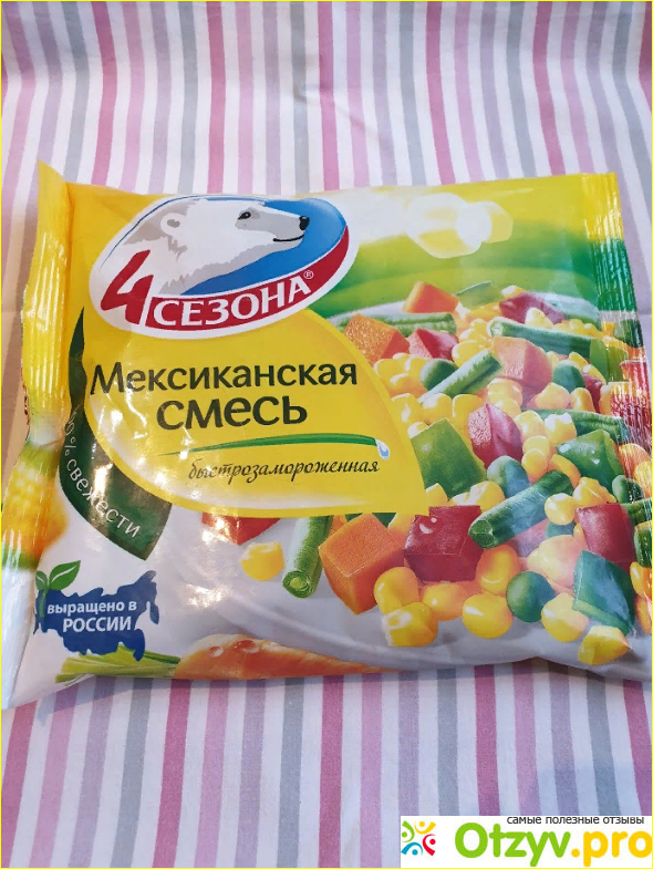 Мой выбор очевиден. Теперь я буду покупать мексиканскую смесь от ТМ «4 сезона» ну очень яркая и привлекательная. Кусочки овощей, перемешанных между собой, создают яркую вкусовую палитру.