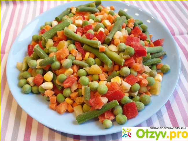 В составе овощной смеси присутствует перец, кукуруза, зеленый горошек, морковка и спаржевая фасоль. Все эти овощи очень богаты микроэлементами, которые пригодятся вашему иммунитету в зимнее время.