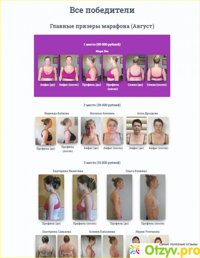 Все фотографии до и после при желании загружаются на сайт и выставляются перед другими пользователями, имеется чат для обсуждения впечатлений и ощущений по ходу развития событий.
