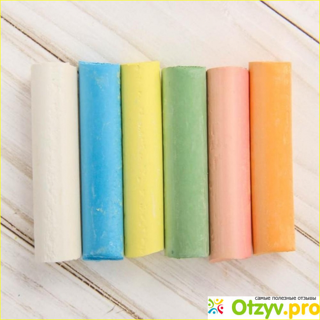 Порадовало количество цветов в наборе и их яркость: белые, синие, желтые, красно-розовые, оранжевые, фиолетовые и зеленые. Глаза не режет, но цвета соответствуют действительности и хорошо смотрятся на поверхностях, цвет равномерно распределяется. Мел не крошится. На руках и одежде остается мел от прикосновений и притирания, но все отлично отходит. Нет жутких химических красок, как у некоторых производителей. Порадовало качество.