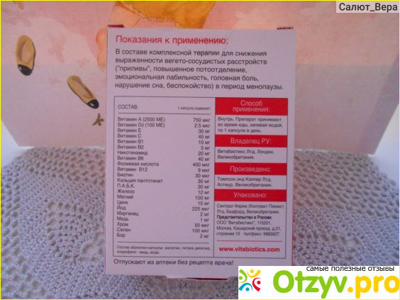 Как видите состав препаратов очень богат, настоящий кладезь полезных витаминов и минералов. Многие спрашивают гормональный ли это препарат? Нет, в его состав входят исключительно полезные для женского организма вещества, которые нормализуют общее состояние, концентрацию женских половых гормонов, вырабатываемые яичниками и жировой тканью женщины. Все компоненты благотворно сказываются на здоровье женщины, купируют негативные симптомы, достигаются нужных органов и клеток с помощью собственного метаболизма, а не влиянием на гормональный фон. Поэтому никакого отрицательного воздействия на организм оказывать не должен!